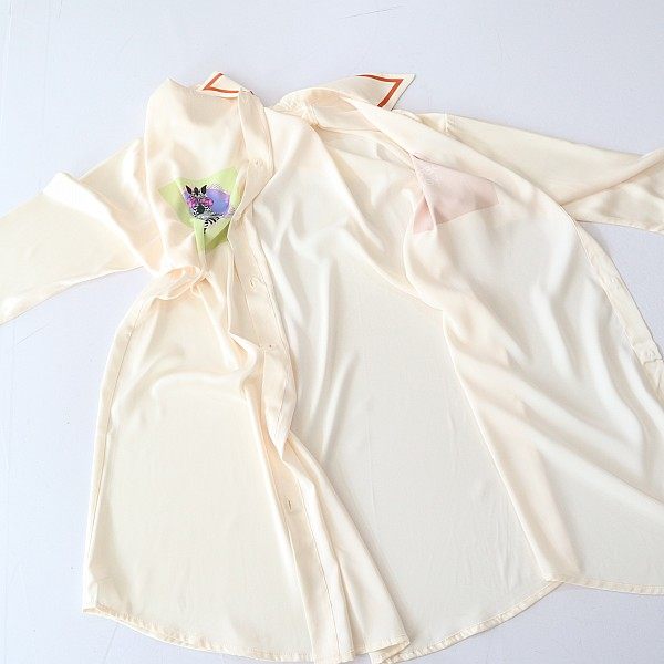 春秋丝绸家居服 性感冰丝睡裙白色衬衫 睡衣带胸垫女2025年新款 夏季