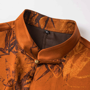 福利 短袖 君子企鹅重缎连袖 男装 中老年爸爸真丝夏装 香云纱唐装