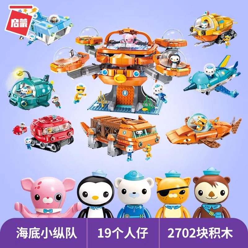 启蒙海底小纵队章鱼堡积木3708塑料拼插装 玩7男女孩子拼插6岁礼物