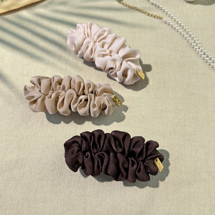 真丝褶皱发夹女气质高级感锻一字夹半扎发百搭发饰新款 3件8折