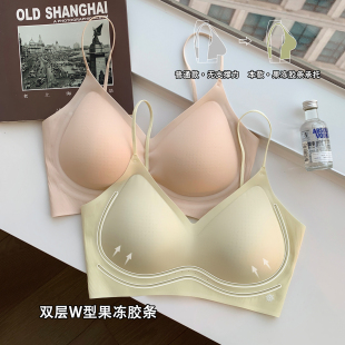 凉感无痕超薄粉底液内衣女细肩带小胸聚拢无钢圈收副乳防下垂文胸