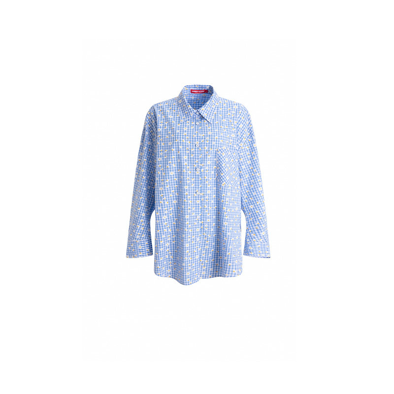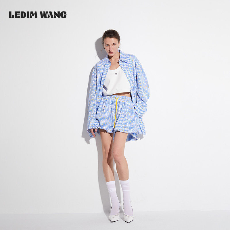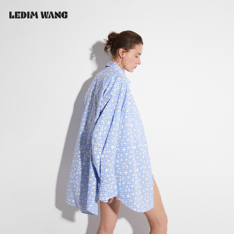 雏菊格纹阔版 红标系列 衬衫 女夏季 纯棉纯色衬衣 LEDIM 新款 WANG