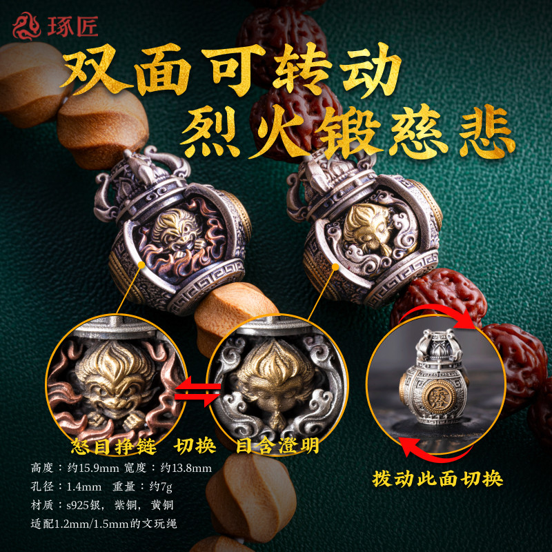 琢匠炼心隔珠银饰diy配件文玩配饰国风猴头手串配珠悟空系列背云