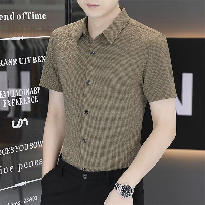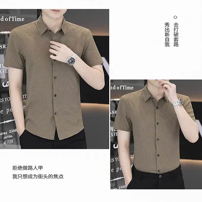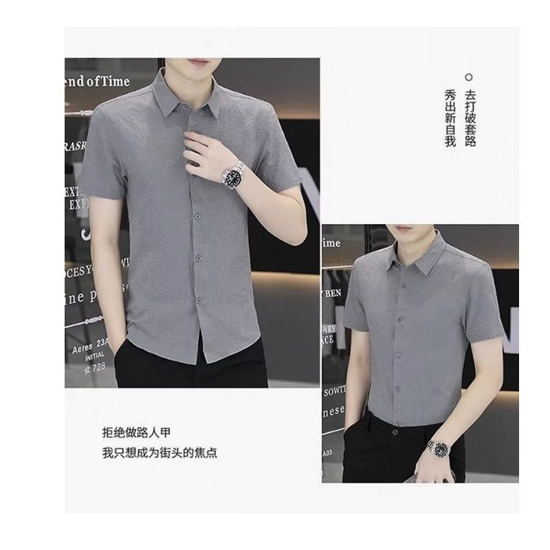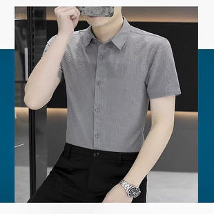 衬衫 修身 男夏季 商务休闲上班工作纯色衬衣韩版 上衣 新款 高级感短袖