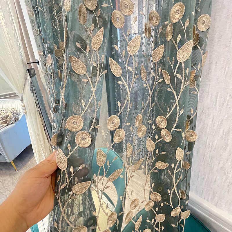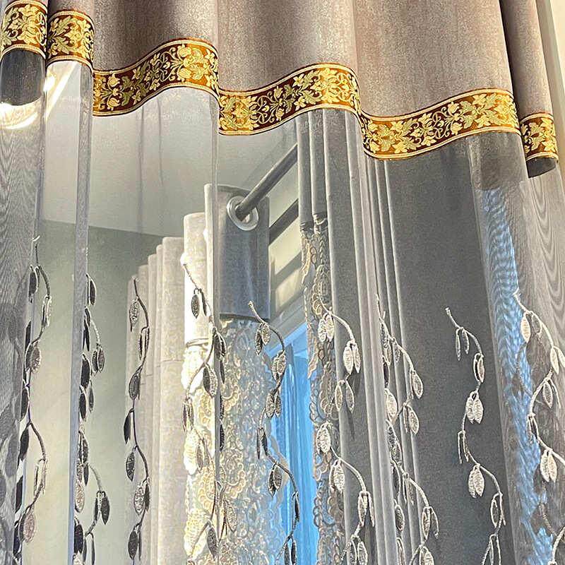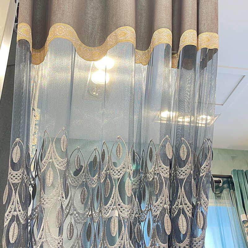 纱帘镂空 灰色窗帘卧室窗帘大气窗轻飘刺绣欧式 客厅奢现代新品 韩式