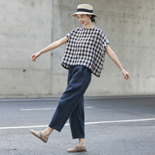子纯亚麻九分气球裤 麻意 文艺休闲百搭裤 2025年春夏款 女 高级蓝