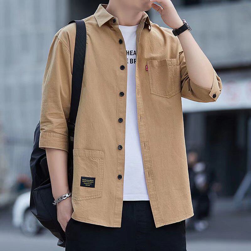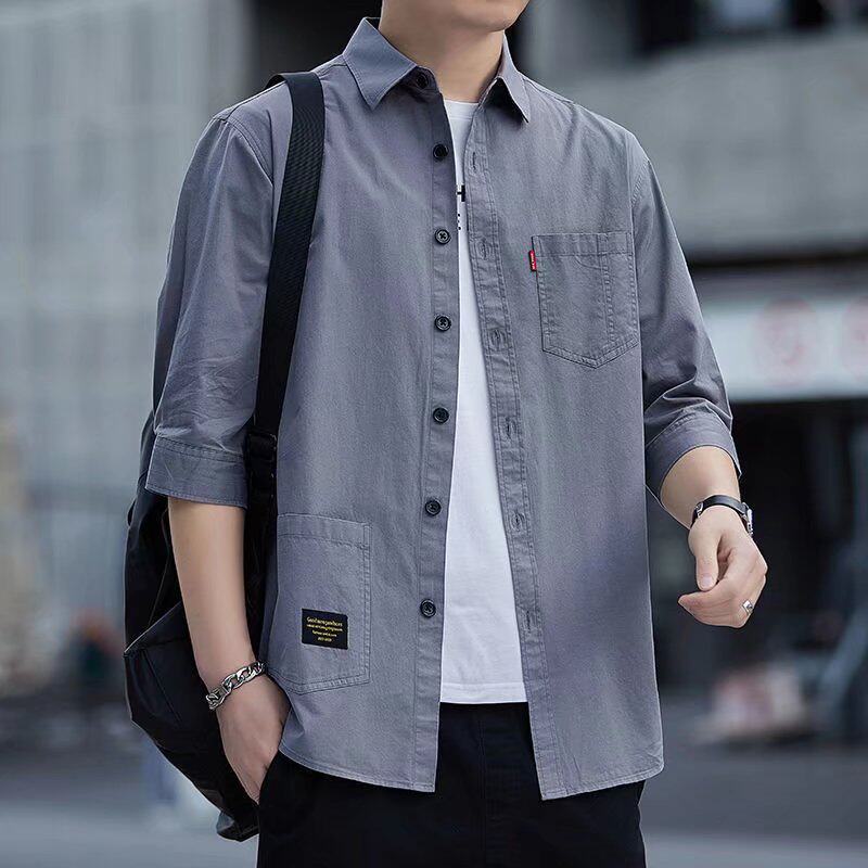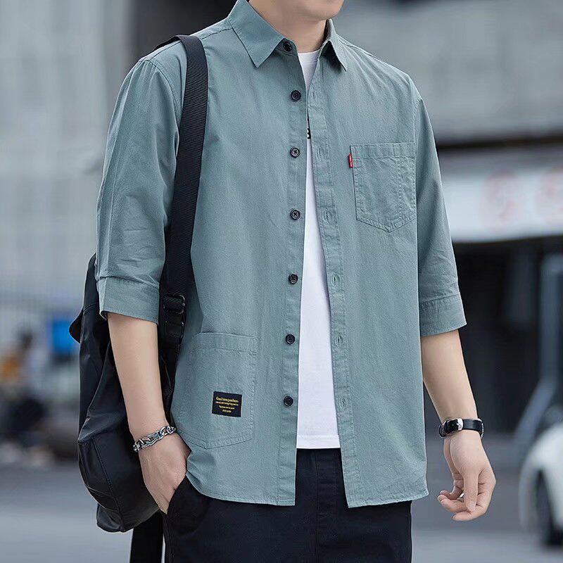 男士 五分衬衣薄款 七分袖 潮流宽松休闲中袖 外套 衬衫 广州十三行夏季