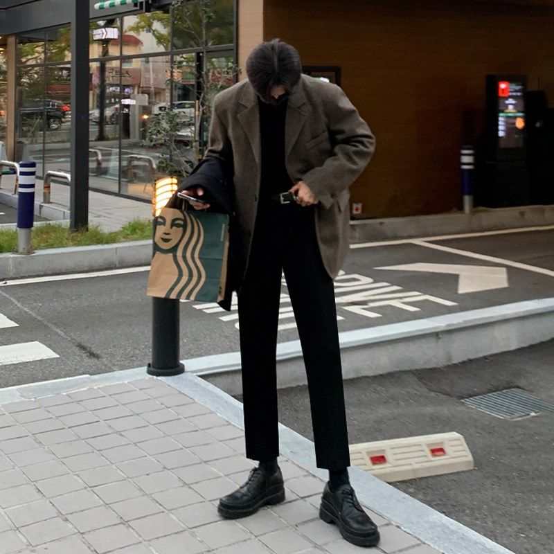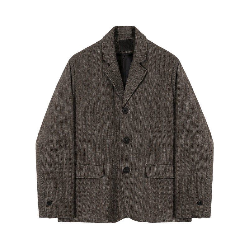 宽松潮流加厚小西服帅气休闲呢子外套 男韩版 秋冬季 高级感毛呢西装