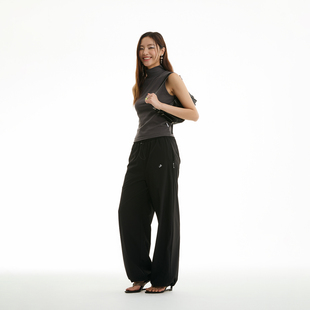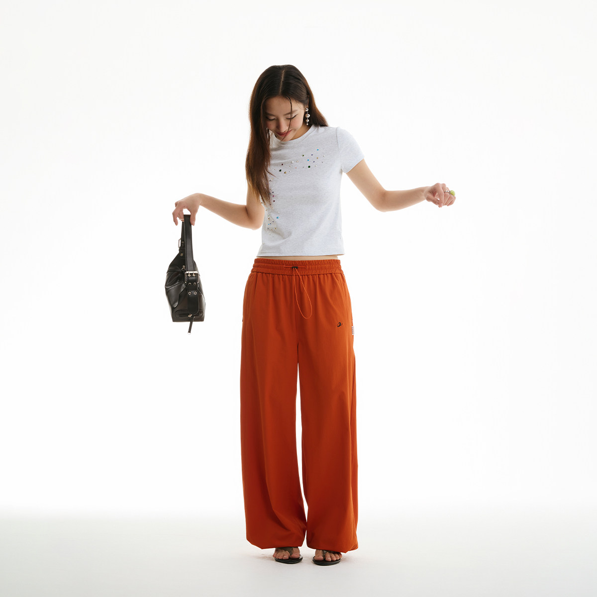 黑色橙色纯色松紧腰直筒风衣休闲运动裤 FUNKYFUN 2025SS