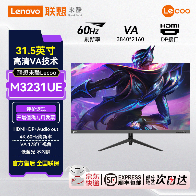 4K超清设计大屏显示器 32英寸2K 升降旋转 31.5 联想来酷Lecoo27