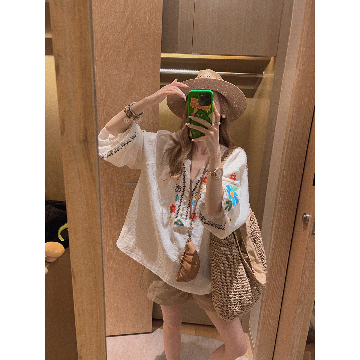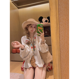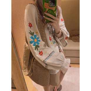 衬衣 Yukiss 亚麻棉娃娃衫 薄料凉爽 重工花朵刺绣