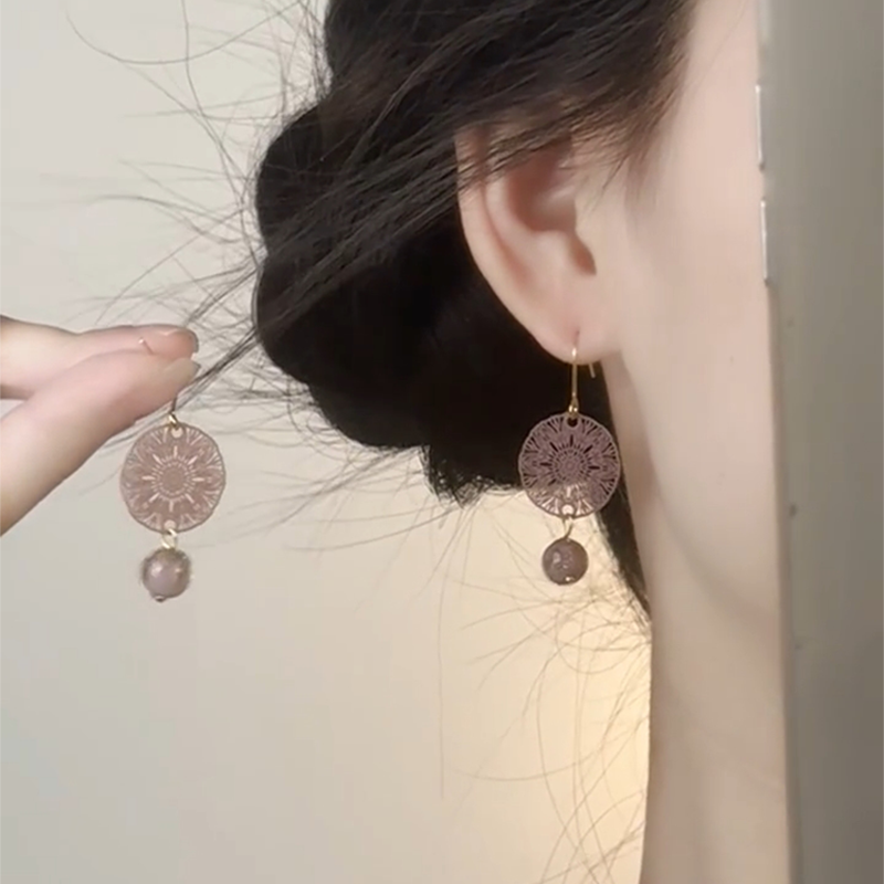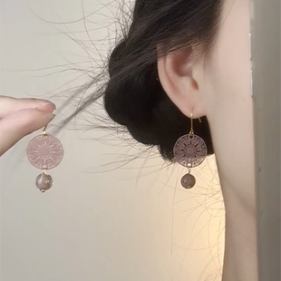 咖啡金半圈耳环女小众设计高级耳饰耳钉2025新款 法式 午后剧场