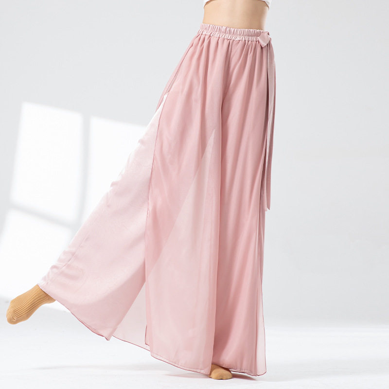 子 中国风练功服双层拼接仙气飘逸阔腿裤 古典舞蹈裤 女宽松雪纺裙裤