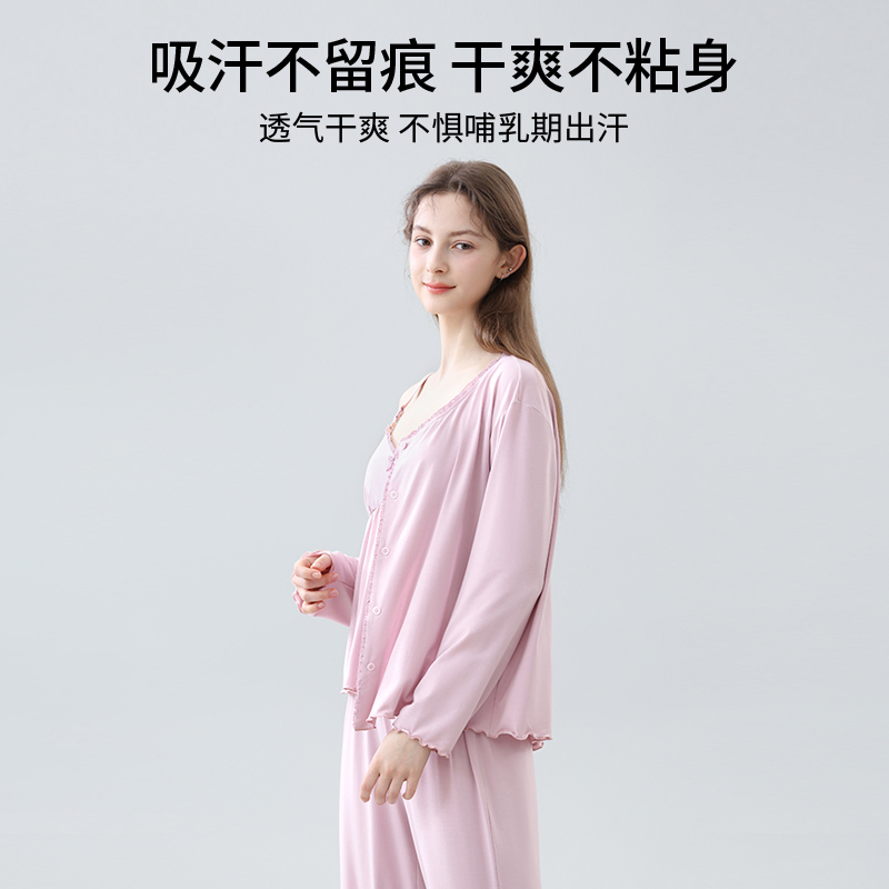 月子服套装 产妇哺乳孕妇睡衣免穿文胸产后喂奶三件套 家居服秋冬款