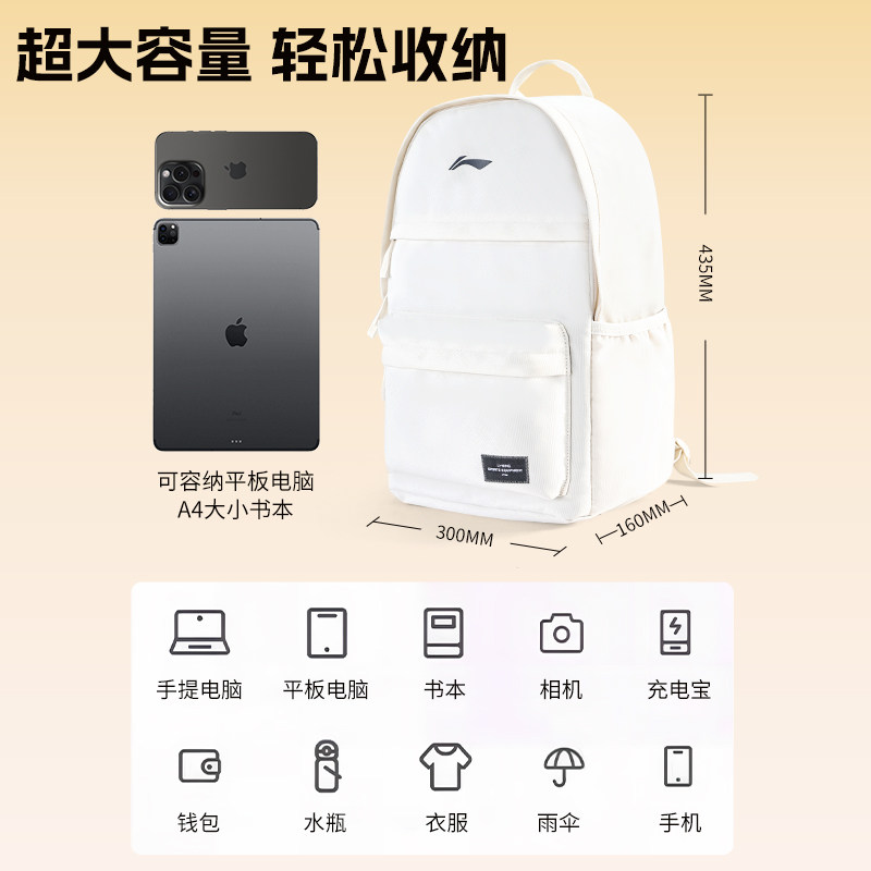 李宁双肩包初中生男女书包高中生大容量大学生新旅行休闲电脑背包