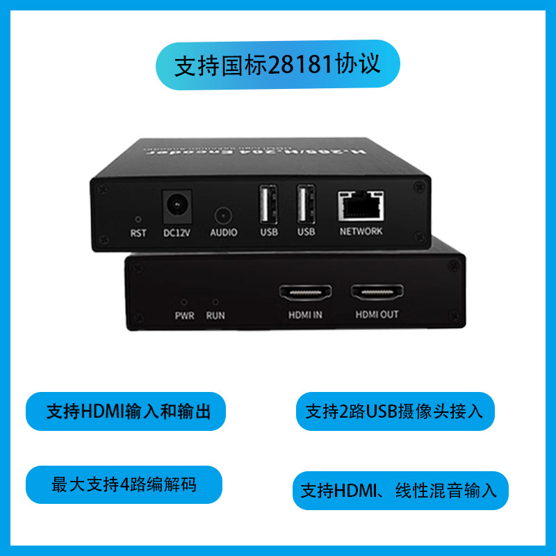 HDMI环出USB镜头音视频ONVIF编解码 器RTMP电脑桌面监控录像SRT