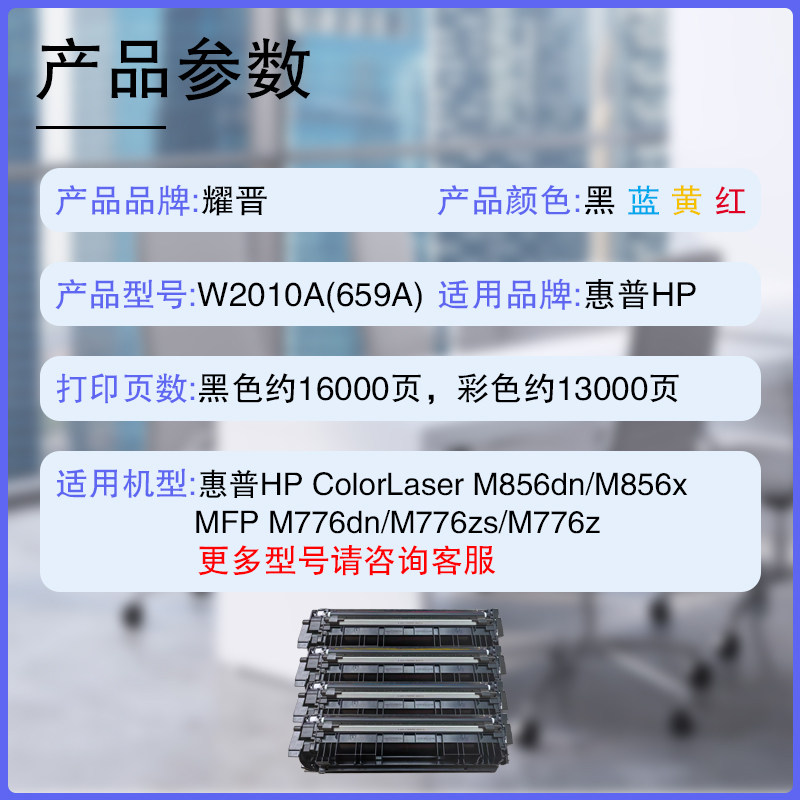 M776zs M776z M856X彩色打印机W2004A硒鼓 M776dn 适用惠普HP659A硒鼓W2010A粉盒HP660A大容量带芯片墨盒MFP