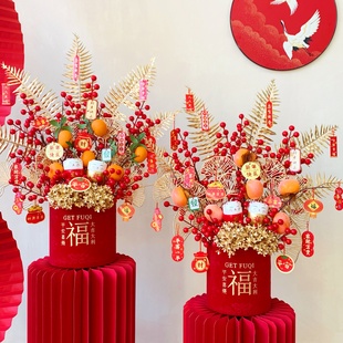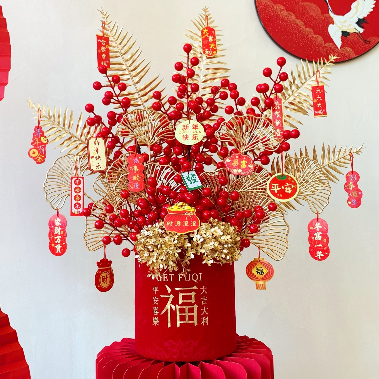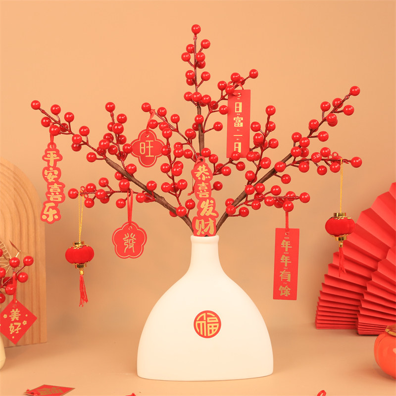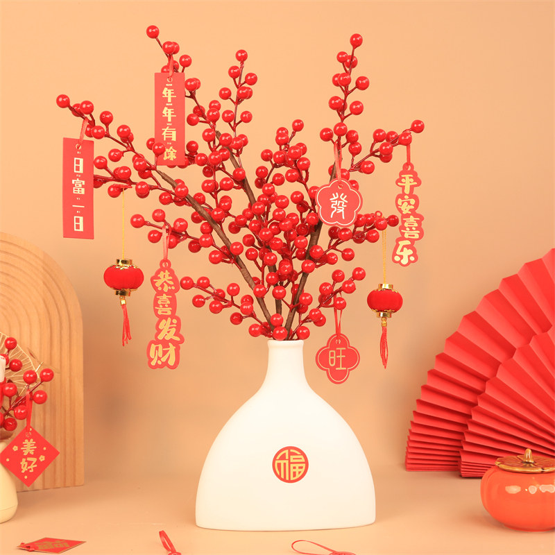 冬青仿真花花艺发财果尤加利银杏叶红果装 饰干花摆件摆放乔迁新年
