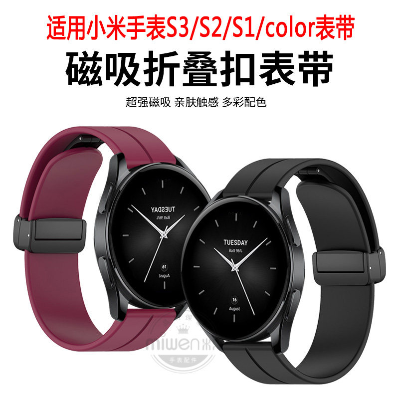 S1替换带Watch2Pro运动color男女 Sport智能手表S2 适用于小米手表表带WatchS3 S4硅胶磁吸折叠扣41mm腕带S4