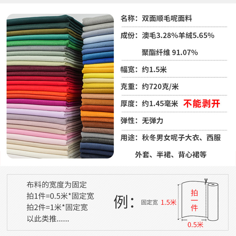 高档双面顺毛呢面料单层加厚秋冬大衣外套半身裙羊毛羊绒呢子布料