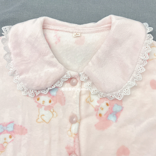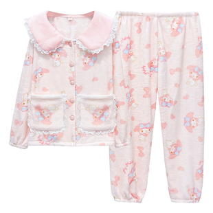 法兰绒加厚可爱少女花边领家居服套装 三丽鸥美乐蒂睡衣女款 秋冬季