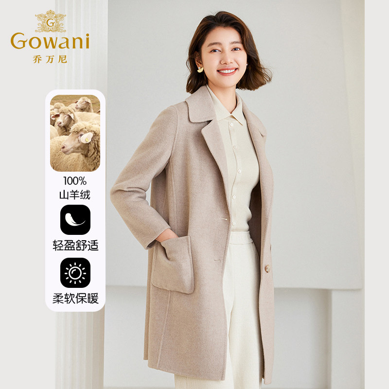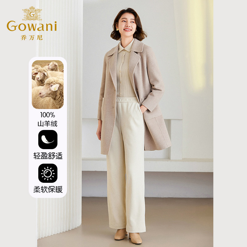 西装 过膝双面羊绒外套 领毛呢子风衣 中长款 纯羊毛双面呢大衣男士