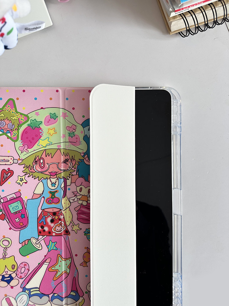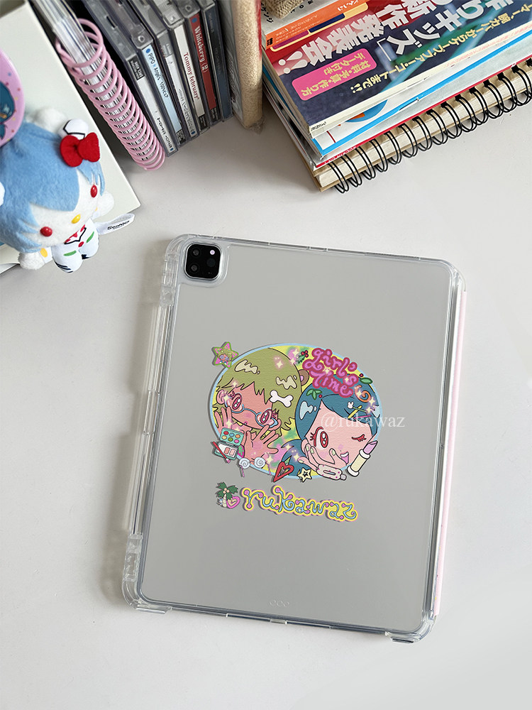 RUKAWAZx鸟鸟一联名原创girls pro保护壳 time可爱复古动漫滑轨亚克力可抽拉拆卸防摔带笔槽适用苹果平板iPad