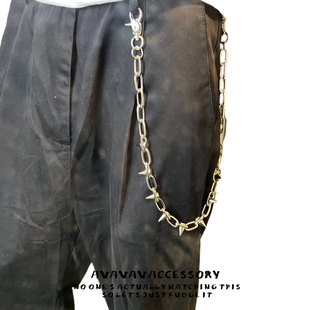 链 裤 铆钉腰链尖头牛仔裤 链条朋克男女hiphop蹦迪国潮暗黑同款
