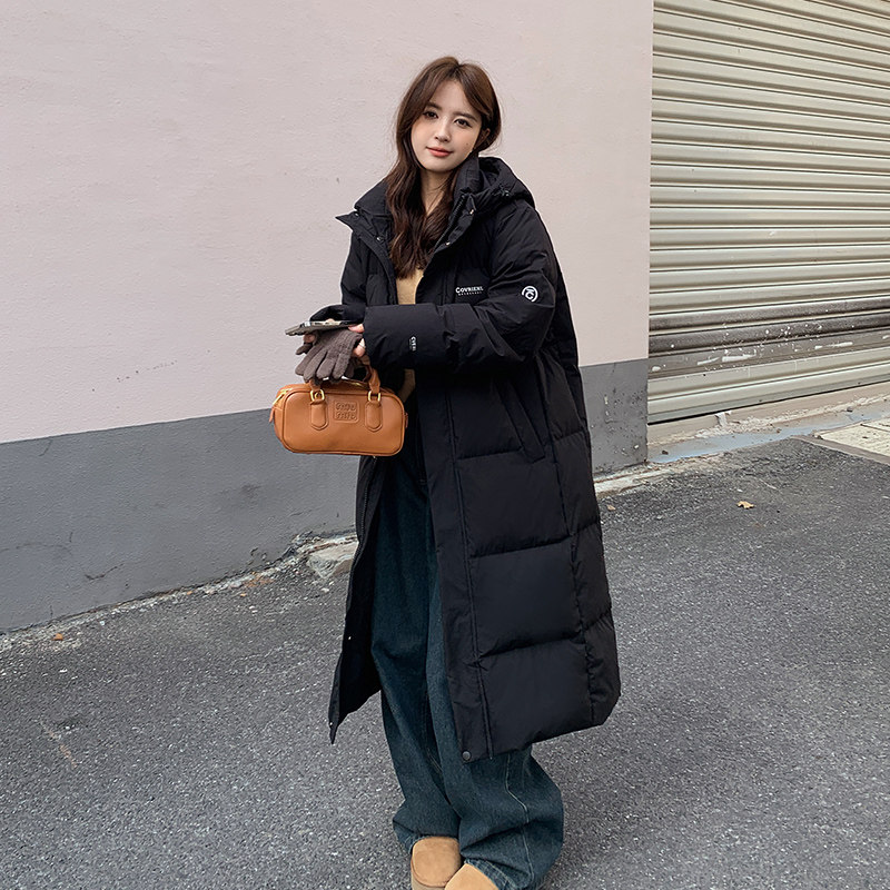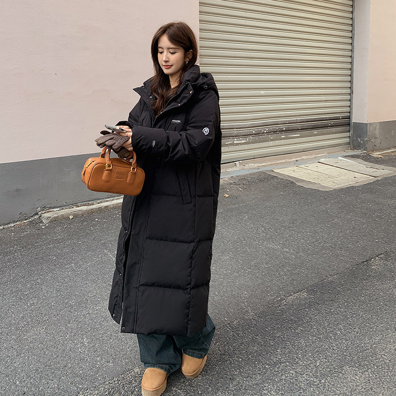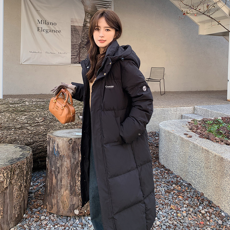 过膝白鸭绒冬季 黑色长款 加厚超长款 韩版 情侣外套 羽绒服女2025新款