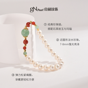 8mm近圆形百搭珍珠手链P 淡水珍珠手链7 京润珍珠 盼愿手链