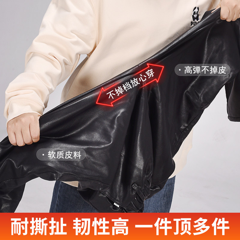 加绒加厚摩托车骑行外卖防风防水保暖宽松棉裤 冬季 加肥大 男士 皮裤