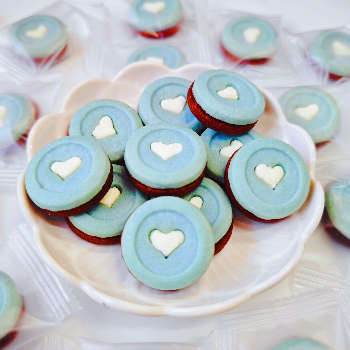 巧客芳夹心巧克力爱心饼干220g网红生日蛋糕装 扮用品 饰摆件甜品装
