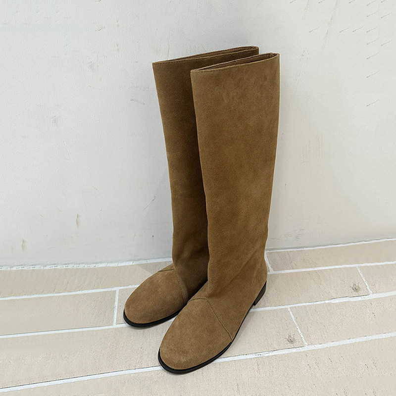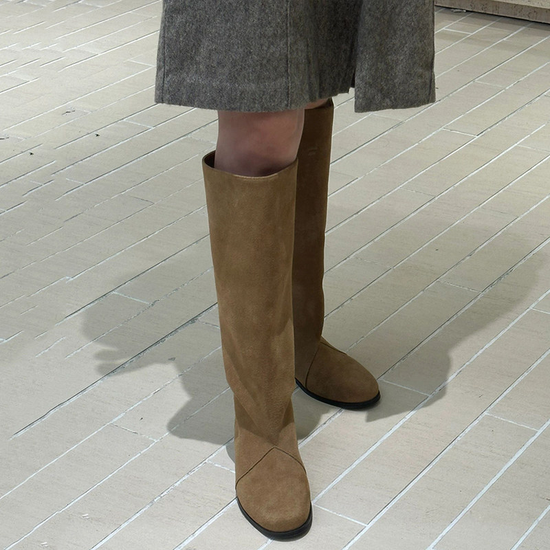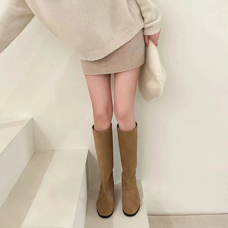 靴皮靴 时装 吴宣仪天美意千金靴复古厚底骑士靴加绒长靴女鞋 子新款
