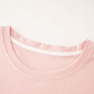 纯棉睡衣女士春秋季 T恤粉色圆领宽松舒适休闲外穿家居服 上衣长袖
