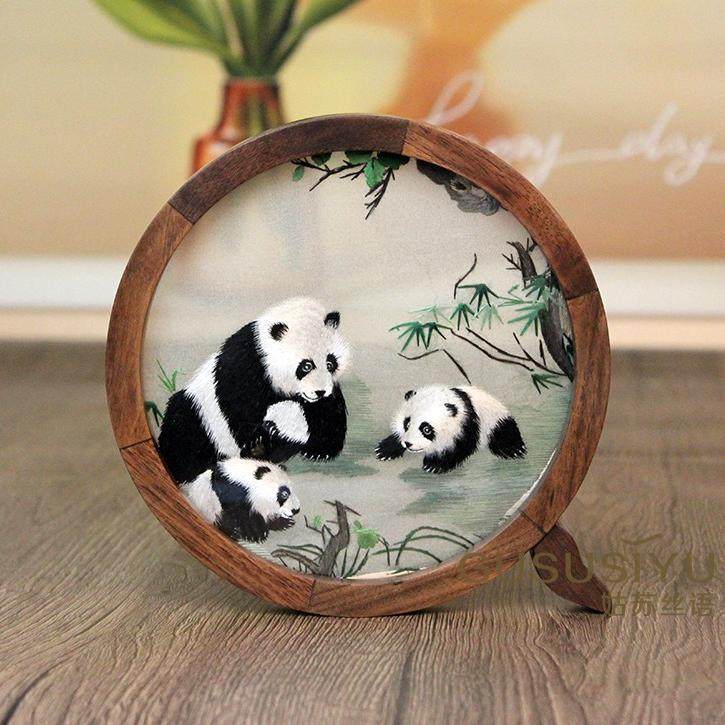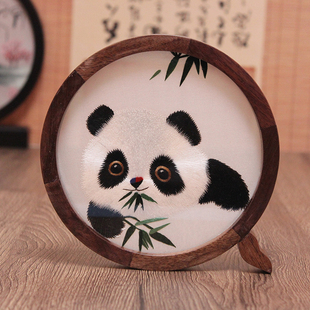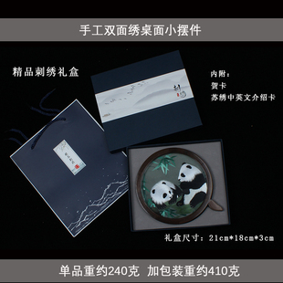 苏绣刺绣摆件手工双面绣中国风工艺品新中式 桌面熊猫摆台伴手送礼
