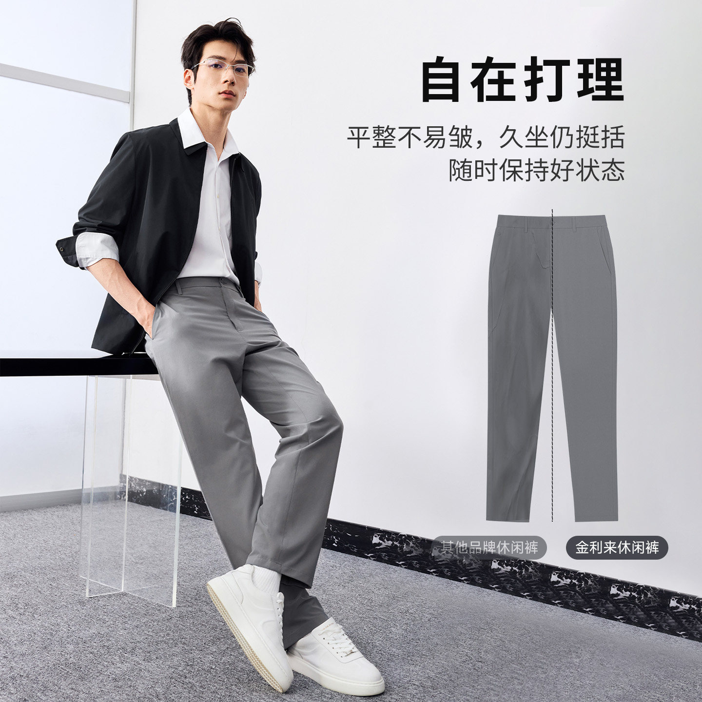 子男款 金利来裤 26春夏新款 弹力直筒休闲裤 行云裤 男士 清爽抗菌