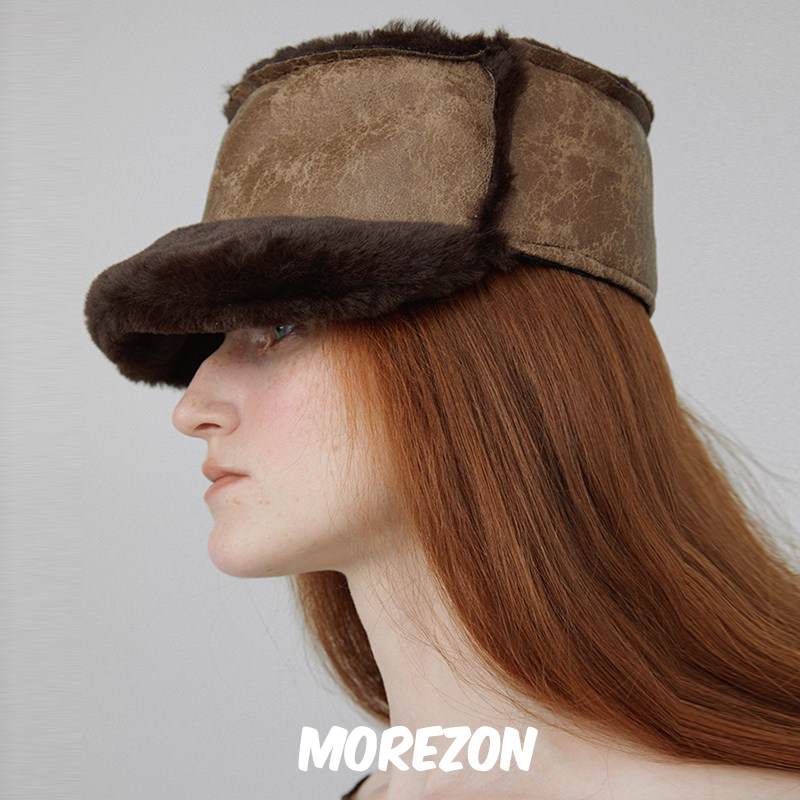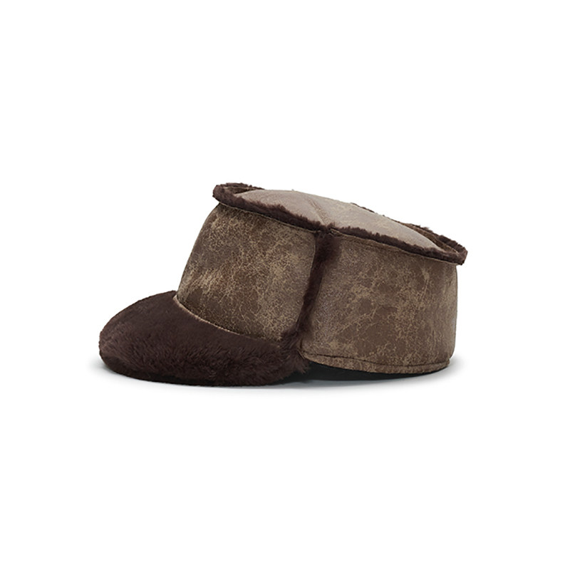 IIING 毛绒雷锋帽男女秋冬加厚保暖护耳防风防寒复古皮革飞行帽子