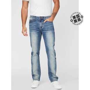 美国奥莱直发直筒裤 自然色多重水洗 guess新月直筒牛仔裤 自营