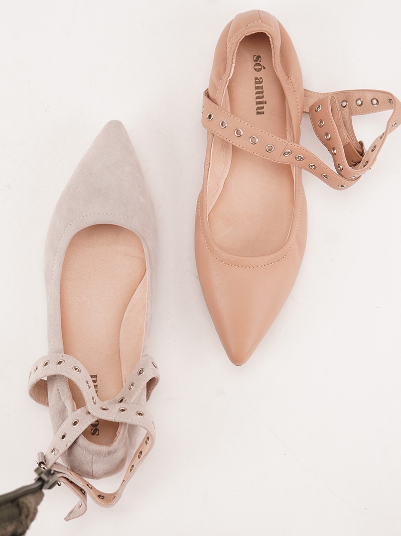 凉鞋 2023春夏新款 漆皮细跟铆钉一字扣带包头时装 尖头高跟鞋 女 韩版