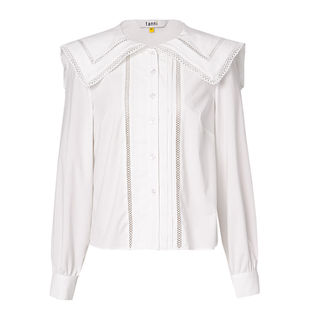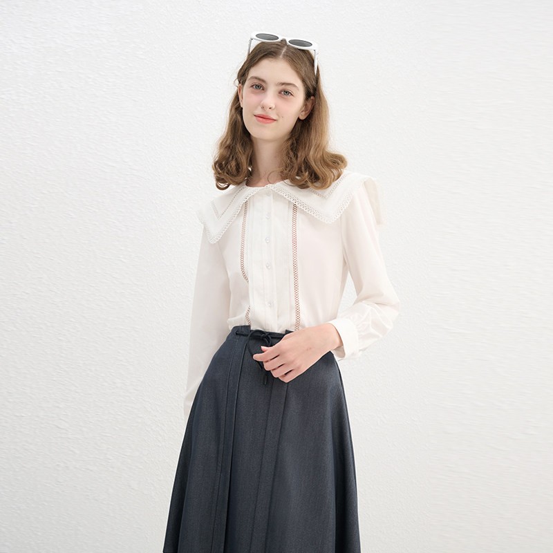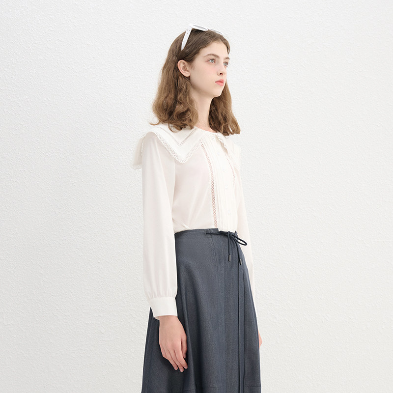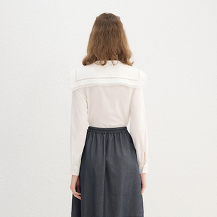 百搭气质上衣女 木耳领衬衫 仙草宝相提花缎真丝桑蚕丝白色法式 长袖