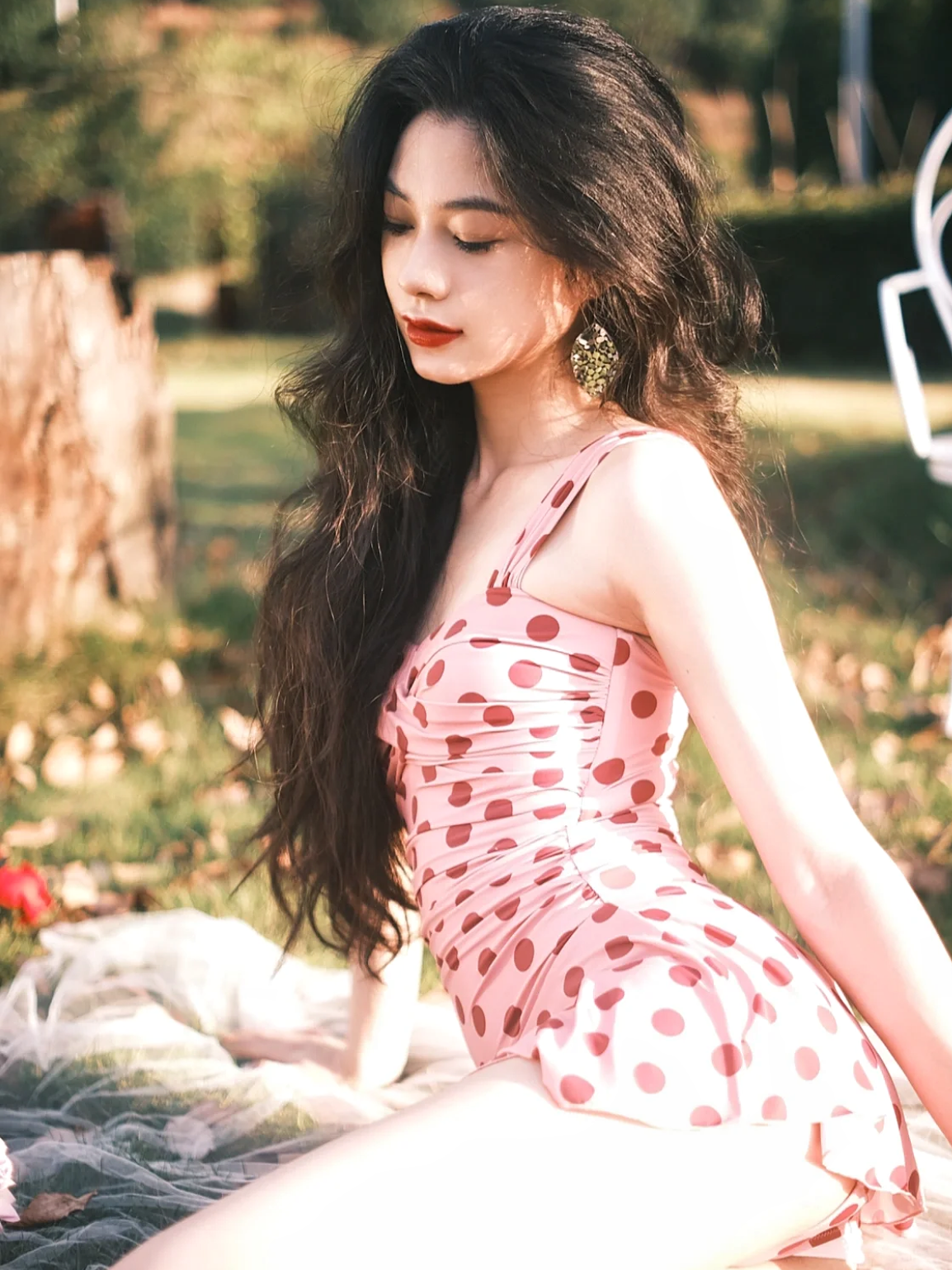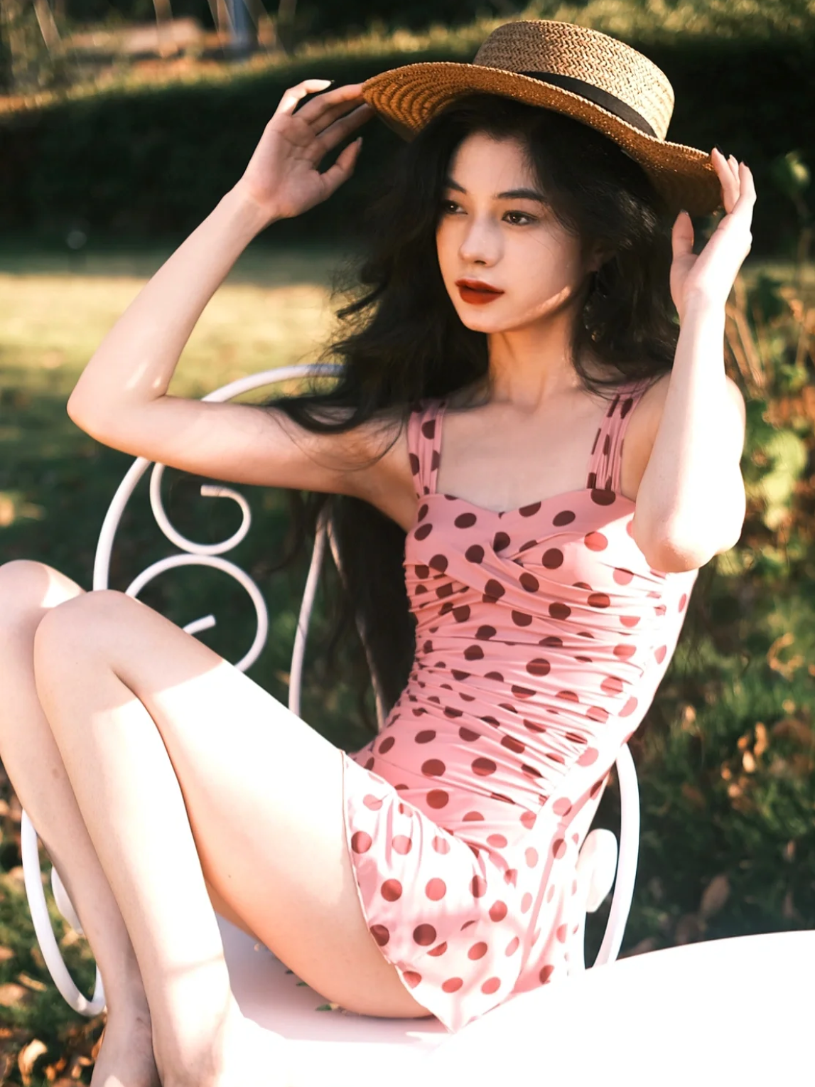 钢托聚拢温泉泳装 复古大牌粉色波点连衣裙泳衣女2025新款 性感法式