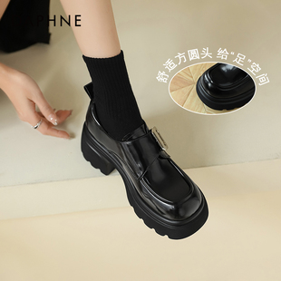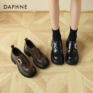 女增高复古单鞋 达芙妮厚底乐福鞋 英伦风黑色小皮鞋 春季 女2024新款