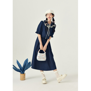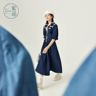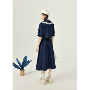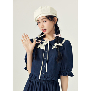 新款 紫涵娃娃领灯笼中袖 女春秋季 半身裙上衣下裙两件套装 牛仔衬衫