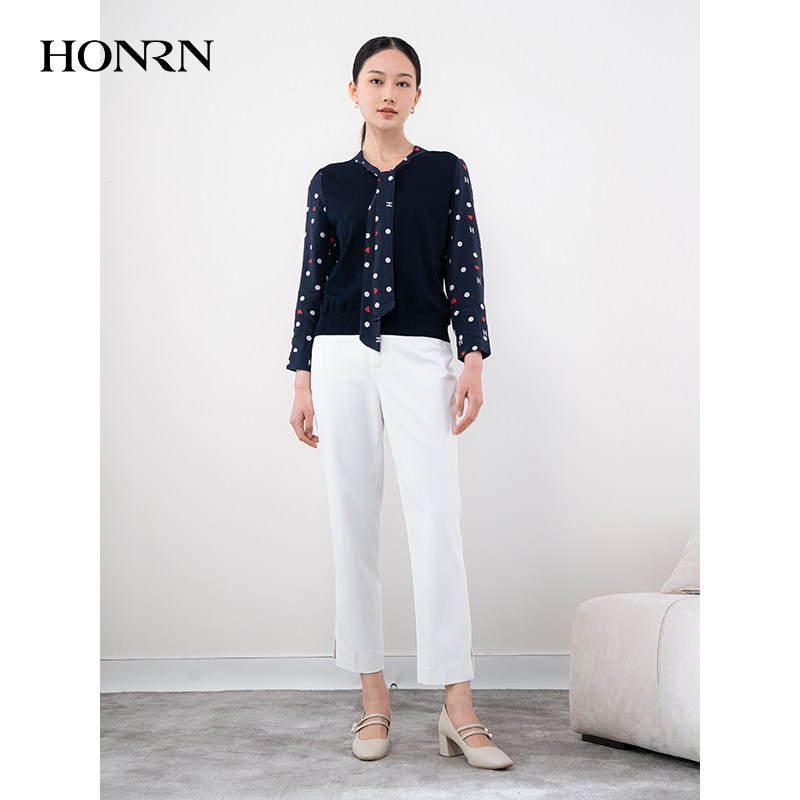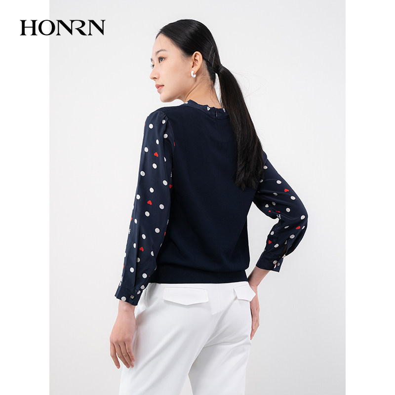 套头针织衫 HONRN 长袖 领口系带短款 上衣女春秋HH11OM678 红人修身