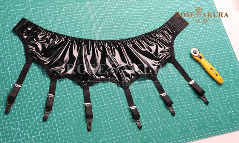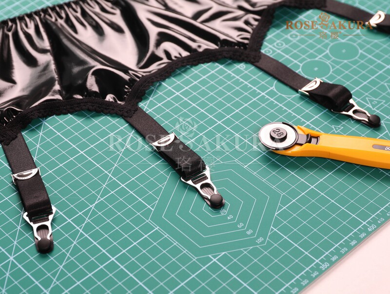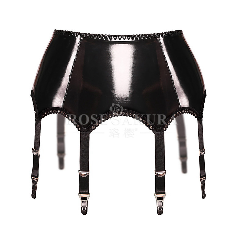 出口欧美高档黑色漆皮金属夹扣六勾吊袜带 6爪钩百搭性感诱惑牢固