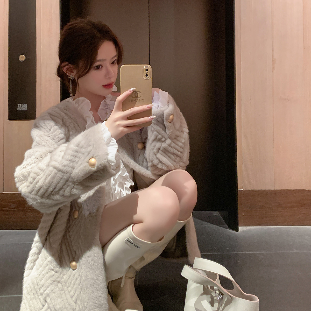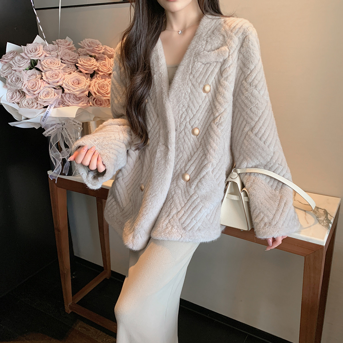 加厚皮毛一体毛毛大衣 洋气灰色小香环保皮草外套女短款 ByYou 冬季
