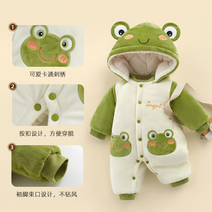 宝宝夹棉连体衣冬季 男婴儿哈衣爬爬服加绒加厚新生儿外出服保暖女