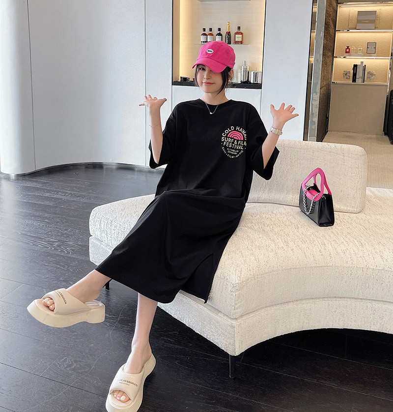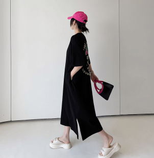 长款 胖mm夏装 休闲显瘦过膝短袖 纯棉睡裙女夏季 宽松孕妇可 2026新款