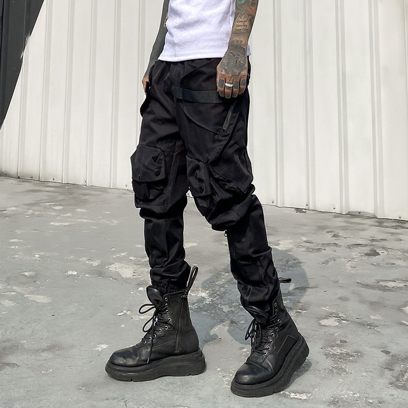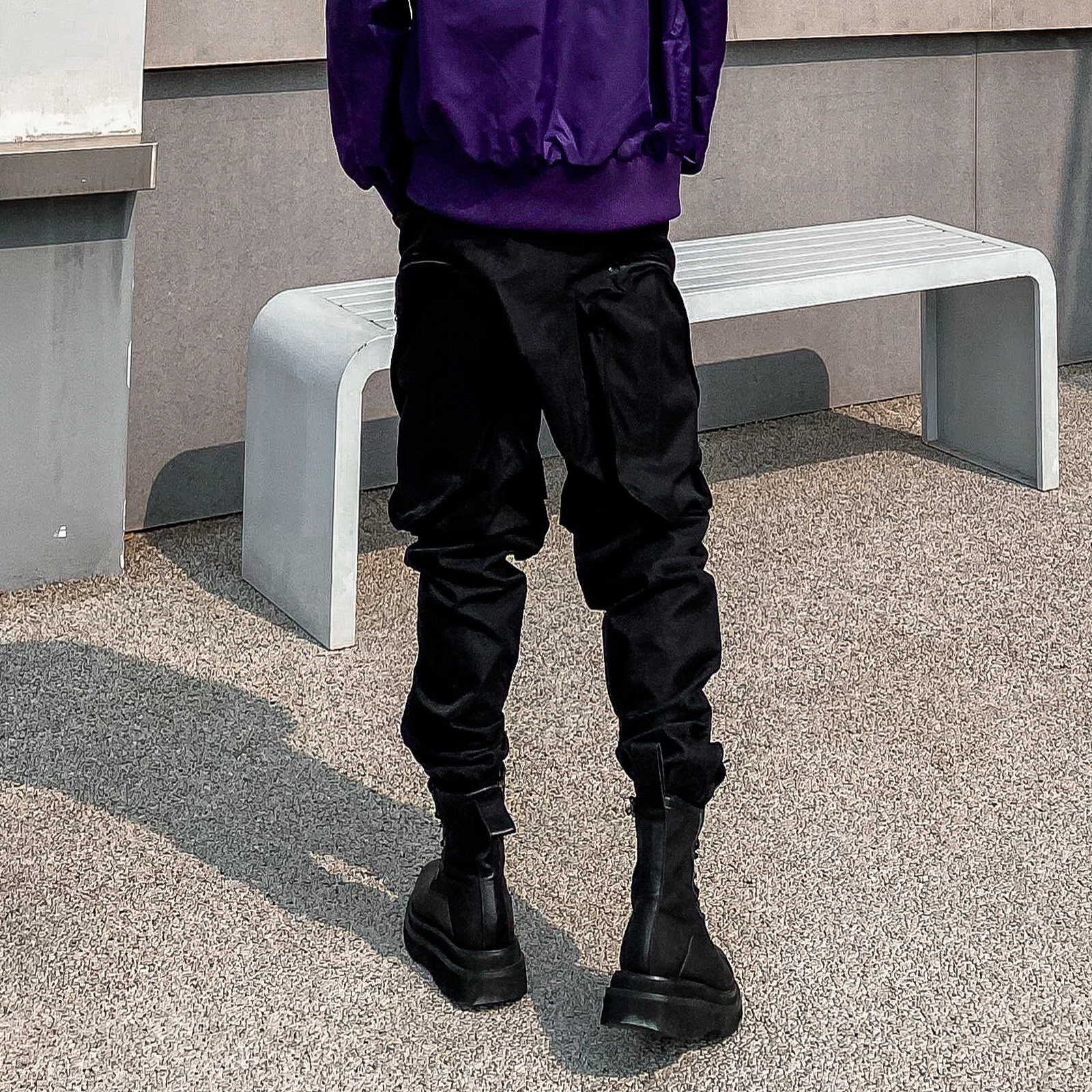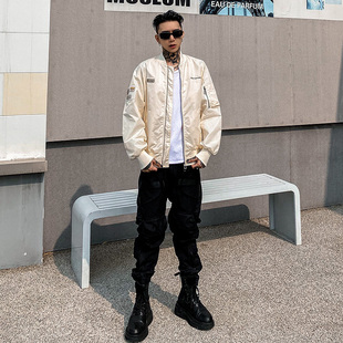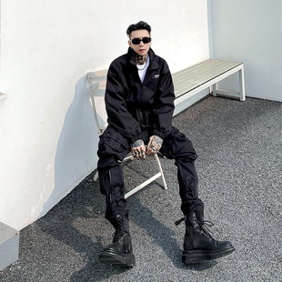 悟空有货街头复古纯色垂感弯刀运动裤 男潮牌宽松灰色百搭休闲卫裤