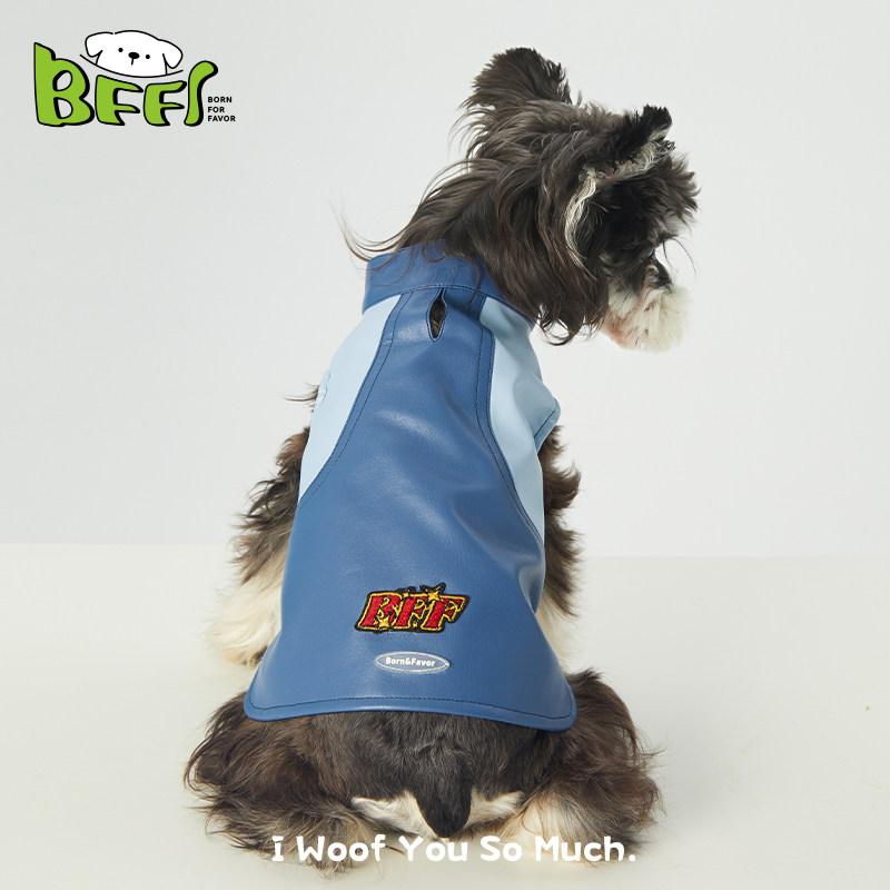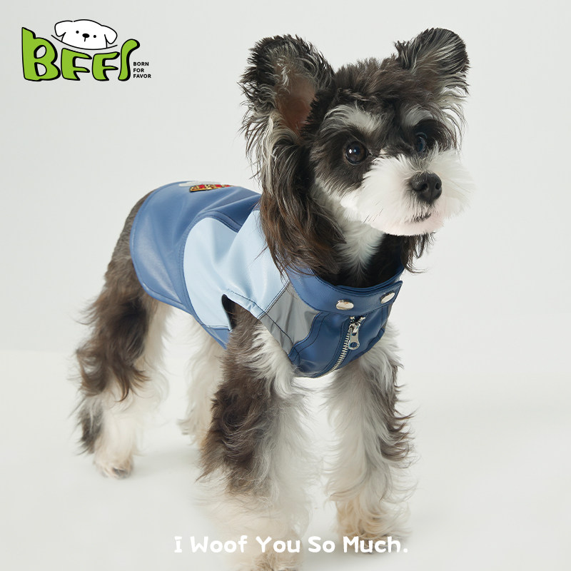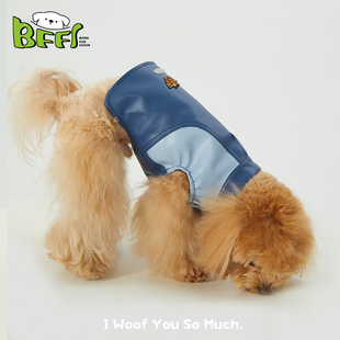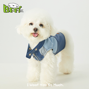 BFF春夏新款 拼接多裁片刺绣狗狗衣服宠物反光机车帅气皮衣雪纳瑞